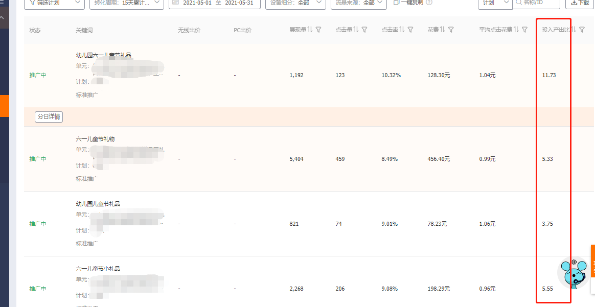付费流量是第一突破口,直通车能带来付费的搜索流量,转化怎么来?影响转化的方面比较多,根据店铺情况以及竞品,自身推广费用选择词根,长尾词结合利用来控制流量。注意点:在稳定原有的计划的关键词的基础上,我们要明白这个产品旺季的原因,是六一儿童节,所以一定要在5月初的时候就提前加一些关于六一儿童节伴手礼等这一类相关度非常高的关键词去慢慢养词,养权重。