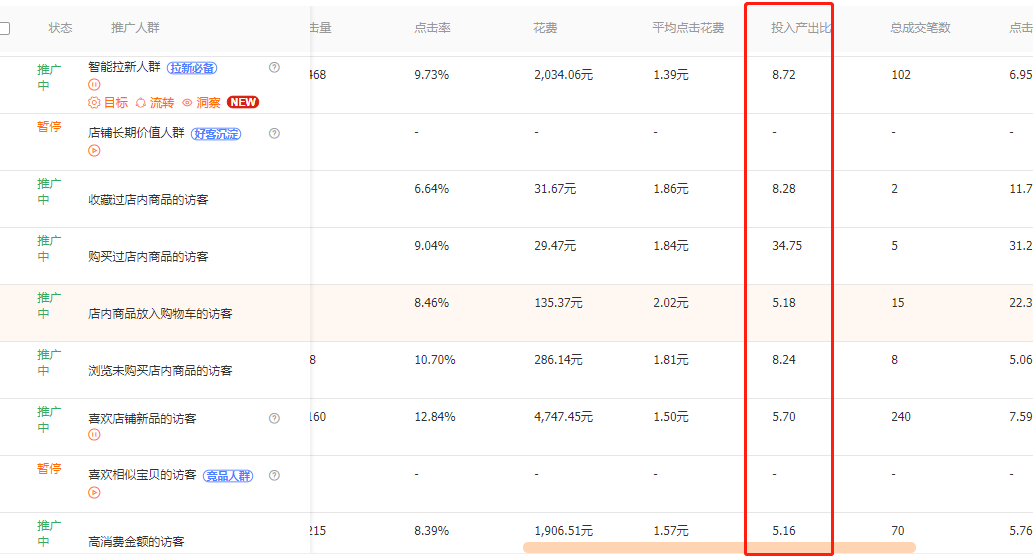 这类产品老客户回购很重要,尤其是老客回购的大单成交比重很高,所以这类收藏加购的人群可以圈,包括浏览未购买的人群这些都可以去圈定测试,精准人群对关键词带来流量的精准度会更高。